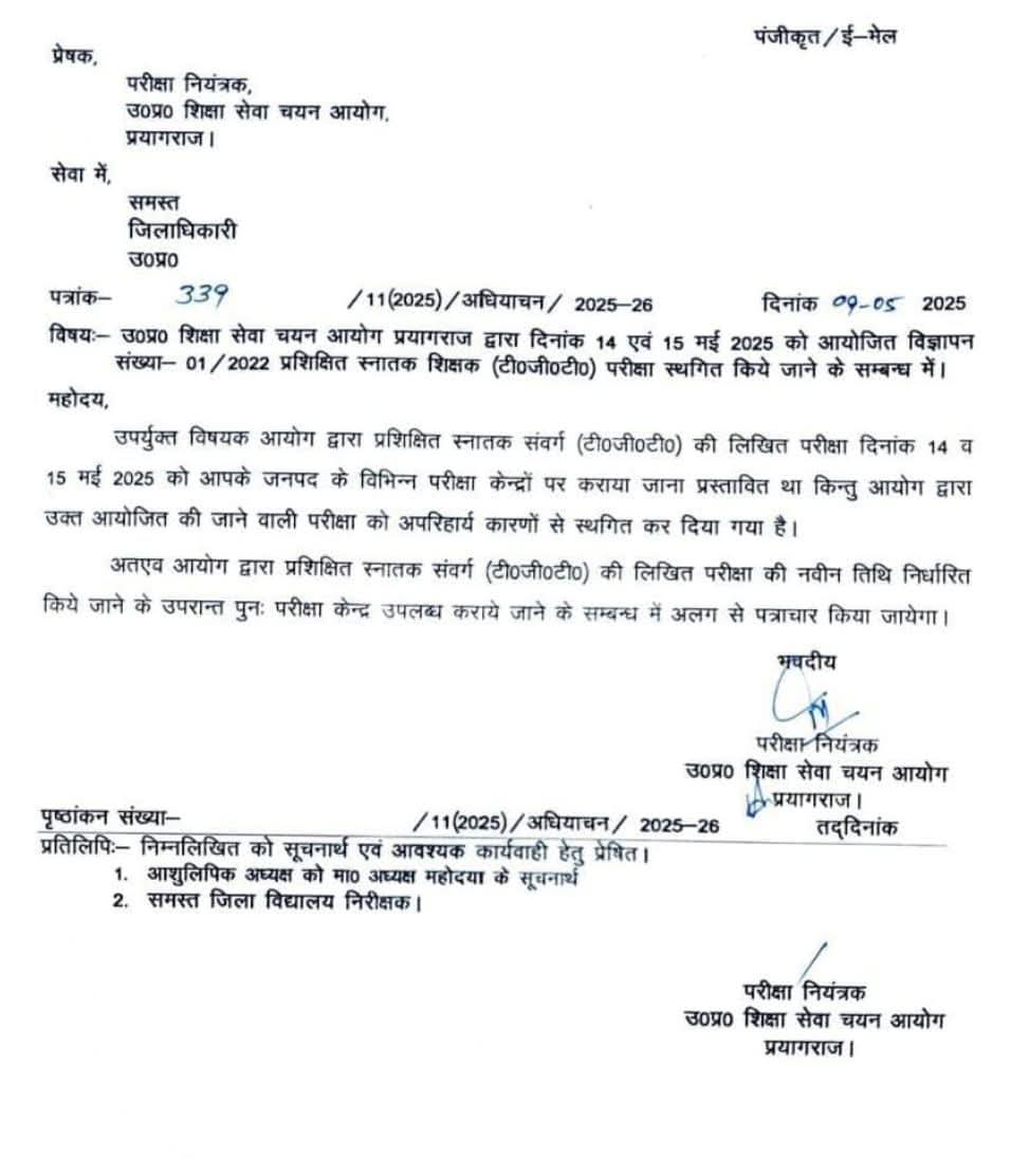 UP TGT Exam Cancelled News Today यूपी टीजीटी परीक्षा एक बार फिर हुई स्थगित, शिक्षा सेवा चयन आयोग ने जारी किया नोटिफिकेशन